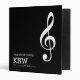 White musical note (treble clef) on black background, personalized with your name and initials, and with your special subject (music or any other title).