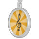 I chose gold plated so that the metal would not react with my skin oils and perspiration. But, I changed the necklace from the gold plated one to a sterling silver. My skin cells will tarnish the silver. But it will not look as bad if some portion of the gold plated necklace somehow became compromised. Zazzle did a find job turning the picture into a pendant for me. As you can see, the colors and the printing of the final product, match the preview. The picture I took is not very clear. But I am pleased with the product I received.