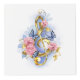 Gold, jewelry, treble clef decorated with delicate, artistically painted pink roses with fluttering blue butterflies.