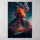 Tree and Erupting Volcano Illustration Poster