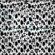 An original pattern design made up of many different hand drawn leaf and tree shapes.