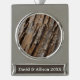 Tree Bark I Natural Abstract Textured Design Silver Plated Banner Ornament