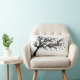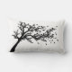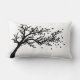 A strong black and white image of a tree bent and blowing in the wind it's leaves scatter in the air. A perfect pillow for any decor.