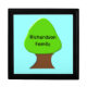 This awesome gift box features a fun digital image of a tree with a green top and brown trunk on a sky blue background. There is customizable black text on the tree allowing you to type in your family name to personalize this lovely box.