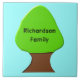 This awesome tile features a fun digital image of a tree with a green top and brown trunk on a sky blue background. There is customizable text on the tree allowing you to type in your family name to personalize this lovely tile.
