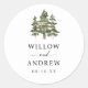 Tree Envelope Seal Sticker. Invite your guests to embark on a journey into the majestic beauty of nature with our elegantly hand-painted watercolor wedding envelope stickers. Each card beautifully captures the essence of a tranquil woodland forest, complete with lush green trees and stunning mountain vistas. The perfect choice for couples seeking a unique and unforgettable way to announce their special day.