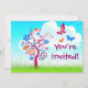 Plain white envelopes are included with paper invitations and will come to fit the invitation size you select. If you don’t need the envelopes, you may choose to not receive them by selecting the dropdown below "Envelopes" and choosing "None." If you’d like to have a design on your envelopes, you can browse all of these available envelopes to find the design that complements your Tree Flower Butterfly Invitation.