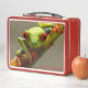 Personalized lunch box featuring a close up of a colorful Costa Rican red-eyed tree frog with his big red eyes and feet against bright lime green skin looking right at you. Easily personalize with a name to create a perfect box for frog lovers! Photo taken at Vara Blanca, Alajuela, Costa Rica.