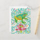 A delightfully colorful tree frog surrounded by flowers and stars.