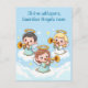 Three cute guardian angels playing trumpets Postcard. Customizable text: Divine whispers, guardian angels near.