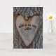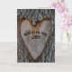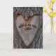 Closeup of rustic heart carved in tree trunk for wedding anniversary for spouse.