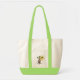 It has sturdy handles and is a canvas tote. It is just what I wanted for my neice to take stuff to the beach on their honeymoon!! The printing was just as pictured.