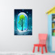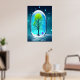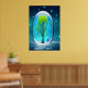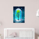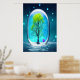 A tree inside a water and ice bubble with a purple ball with the dark night in the background. This is a AI generated art.