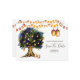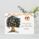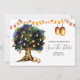 A wonderful and vibrant illustration featuring a large oak tree filled with faux shining hanging lanterns and string lights set against a white background. These are ideal for rustic country fall / autumn, summer, spring or winter "save the date" announcements. These luxurious and elegant flat cards will delight your guests.