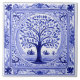Tree Mediterranean Rustic Blue and White Folk Art Ceramic Tile