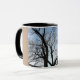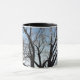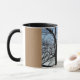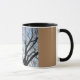 A Mug with a Picture of a Tree and Sky on it and Brown back ground.