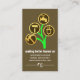 A light brown features a creative gold handyman tools tree where each tool can represent some of the services that you might offer. The green tree itself can represent landscaping, gardening etc. Just below this motif lies the business name "making better homes co" which you can change alongside the contact details. Near the base of the card is a drill-spanner demarcation line.