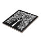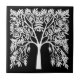 Ceramic tile in a stylized, leaf and branch, tree of life design in white on black