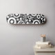 An attractive abstract design made up of circles, some solid, some double, some spoked like wheels. All the circles are connected with a network of lines, like cords, strings or wires or maybe stems and tendrils. Creating a composition that might be the inner workings of some sort of mechanism, some kind of diagram, maybe a microcosmic map of the universe. The colors are white on a black background. Made from a vector original and output at 300 dpi to ensure the best print quality.