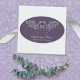 An oval monogrammed wedding sticker with a Tree of Life illustration of entwined tree branches and lilac leaves on a dark eggplant purple background to add your wedding date and names. These stickers are not limited to a single purpose. Use them to seal envelopes, adorn invitations, decorate favors, or add a touch of sophistication to any wedding item. They seamlessly blend aesthetics with versatility, ensuring your personal touch is felt throughout your celebration.