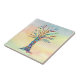 This decorative tile features a unique Tree of Life design on a watercolor background.