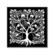 Self-inking stamp in a stylized, floral, tree of life design in white on a solid background