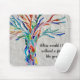 This decorative mouse pad features a mosaic tree in rainbow colors and the words,