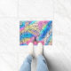 A colorful Tree of Life Art design mat. Rainbow colors and illustration of a tree will liven up a mudroom or kitchen entry.