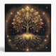 A beautiful ornate design with a tree of life with a heart at the roots. There is a night sky background.