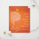 An ornate rendering of a Tree of Life dominates the front of this colorful Bat Mitzvah Save the Date invitation. The tree is cropped off the invitation on the left side and has leaves falling from it. A bright yellow bird has taken flight over the top of the invite. Customized save the date text prints to the right against the vibrant orange background. The reverse repeats the tree as a smaller icon with the Bat Mitzvah girl's name printing below along with the date of the event. Available with matching products.