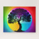 Tree of Life Silhouette in Front of Rainbow Sky Jigsaw Puzzle