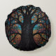 Tree Of Life Stained Glass Mosaic Art Round Pillow