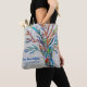 This decorative tote bag features a colorful mosaic tree of life on a pale gray background.