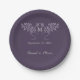Tree of Life wedding dessert plates with lilac tree branches on a dark eggplant purple background. Add a monogram and your wedding date.