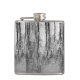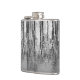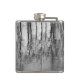 This black, silver, white and gray fine art hip flask features tree reflections which make a shimmering abstract pattern on the pond.