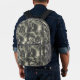 Camo Pattern © Sunny Mars Designs. Own the wilderness: Stealthy men's backpack with a rugged black, white, and gray woodland camo pattern featuring a unique seamless wood tree roots pattern.