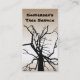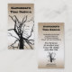 This business card is advertising a complete tree service which offers landscaping, lawn care, pruning, removals, fertilizing, spraying and disease and insect consultations. It features an artistic black abstract pattern of the top of a tulip tree in winter with bare branches in silhouette set on a brown and bronze metal gradient. Another tree is on the back along with the pertinent business information. All text can be customized to suit your particular business.
