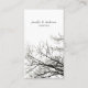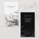 Elegant and minimalist business card template with black and white silhouettes of trees and bird.