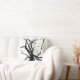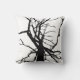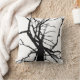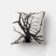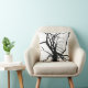 This contemporary throw pillow features an artistic, black and white abstract pattern of the top of a tulip tree in winter with bare branches in silhouette.