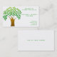 A wonderful graphic of a pretty green tree graces this business card on the left side. Done on a white background with matching green text, this business card is striking. All text is customizable.