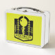 This is a standard metal lunchbox that appears to work just fine. We designed this box ourselves with an uploaded photo and custom text on the front and back. It looks absolutely beautiful except the front of the lunchbox is not centered like it shows in the photo. The print borders don't align with the inset flat part of the box where the preview photo online showed it perfectly centered in there. The back looks nice and centered though.