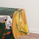 I am very pleased with this purchase. The quality is good, it is heavy and the image decorating it is brilliant and very eye-catching. When I first laid eyes on this tablecloth, still folded and in the transparent covering, it brought a smile to my face and I knew right away it was a good choice. A few days later my wife replaced our old tablecloth with this little gem and was quite satisfied. She noted that it is thick and fits the table very well with just enough hang over (although our dining table is extended by a traditional leaf which we keep in place even if we are not having guests over) and stays put instead of blowing all over the place. The image decorating this tablecloth is brilliant and very eye-catching. It looks even better than it appeared online.