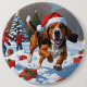 Treeing Walker Coonhound Snow with Christmas Hat Button