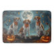 Unleash the spooky spirit with this eerie Halloween design featuring a pack of dogs under a dark, moonlit sky, surrounded by flying bats and glowing pumpkins. Perfect for those who love a touch of frightful fun with their furry friends!