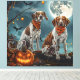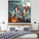 Unleash the spooky spirit with this eerie Halloween design featuring a pack of dogs under a dark, moonlit sky, surrounded by flying bats and glowing pumpkins. Perfect for those who love a touch of frightful fun with their furry friends!