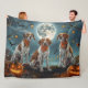 Unleash the spooky spirit with this eerie Halloween design featuring a pack of dogs under a dark, moonlit sky, surrounded by flying bats and glowing pumpkins. Perfect for those who love a touch of frightful fun with their furry friends!