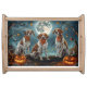 Unleash the spooky spirit with this eerie Halloween design featuring a pack of dogs under a dark, moonlit sky, surrounded by flying bats and glowing pumpkins. Perfect for those who love a touch of frightful fun with their furry friends!