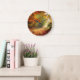 Forest, autumn, fall season clock. Orange leaves, home decor clock.