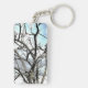 An art design of a tree in winter. Bare frosty branches against a cold sky.