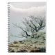 A lone frost covered mountain tree with snow clouds in the sky. Wales UK.